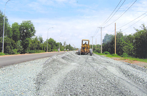| Thi công hoàn thiện nền đá - công trình đường Tam Tân - Củ Chi |