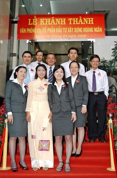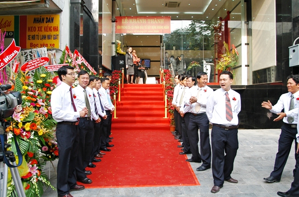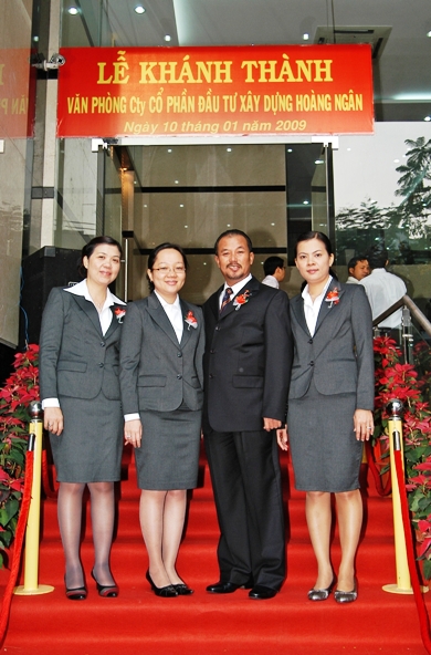 | Toàn thể nam nhân viên đứng chào đón khách mời |